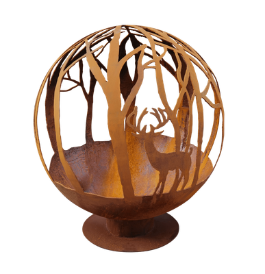 Transform your outdoor space with the Deep Forest GN-FB-510 Sphere Fire Pit, where the warmth of fire meets the artistry of nature. Forged from durable Corten steel, this handcrafted spherical fire pit showcases an intricate forest motif — trees, leaves, and wilderness silhouettes — creating a glowing scene of natural beauty with every flicker of flame. A perfect balance of function and art, it invites you to gather, reflect, and connect with the outdoors.